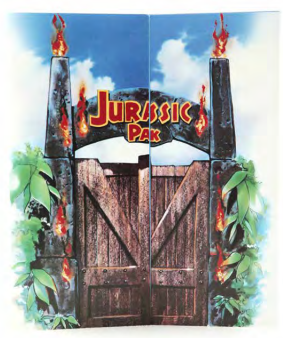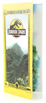 Une brochure sur le parc de Jurassic Park, un film d’action-aventure de science-fiction primé aux Oscars® de Steven Spielberg. Les brochures du parc sont apparues dans le film à divers endroits, y compris le centre d’accueil et les véhicules de tournée Ford Explorer. Cette brochure papier recto-verso présente une carte imprimée de Jurassic Park sur un côté qui identifie différents sites de l’île, y compris le centre d’accueil, l’héliport, les clôtures électriques et les enclos des dinosaures. Le verso montre un dessin imprimé des portes du parc, avec des informations générales comprenant une section en japonais, une publicité Kodak Film® et une photographie de terrain de montagne qui forme la couverture avant de la brochure une fois pliée. La brochure présente des signes mineurs d’utilisation.