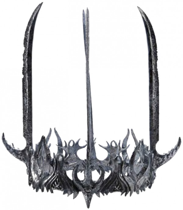 La couronne du Roi-Sorcier d’Angmar (Brent McIntyre) tirée de l’adaptation épique de J.R.R. par Peter Jackson. Le Seigneur des Anneaux de Tolkien : La Communauté de l’Anneau. Frodon a été témoin du roi spectral lorsqu’il a mis l’Anneau Unique lors de l’attaque de Nazgûl sur Weathertop. Créée par Weta Workshop, la couronne est moulée en résine et ressemble à une construction en fer, avec quatre longues flèches émergeant d’une bande torsadée. La résine est peinte à la main et savamment patinée pour refléter la damnation éternelle des Nazgûl. Cette couronne a été remise à United Cutlery, titulaire d’une licence New Line Cinema, en tant que pièce de référence pour la création d’une version réplique. La pièce montre une usure mineure due à l’utilisation de la production, mais reste en très bon état.
