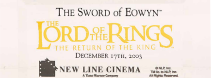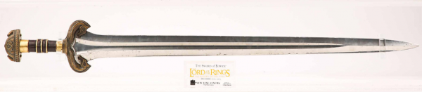 L’épée de héros d’Eowyn (Miranda Otto) tirée de l’adaptation de J.R.R. par Peter Jackson. L’épopée fantastique de Tolkien Le Seigneur des Anneaux. Eowyn était la nièce du roi Theoden (Bernard Hill) et la sœur d’Eomer (Karl Urban). La servante du Rohan a défié les souhaits de son oncle et s’est déguisée avec les Rohirrim et le hobbit Merry (Dominic Monaghan) jusqu’à la bataille des champs du Pelennor, où elle a tué le roi sorcier d’Angmar. Cette épée a été spécialement conçue pour le personnage d’Eowyn par l’atelier Weta de Nouvelle-Zélande. Il a été décerné lors d’un tirage au sort parrainé par Hasbro et New Line Cinema, au cours duquel les propriétaires de jeux de table sur le thème du Seigneur des Anneaux ont eu la possibilité de gagner l’une des huit armes d’un tirage au sort, chaque arme appartenant à un différent personnage principal. Le concours a été spécifiquement organisé pour promouvoir la finale de la saga fantastique épique. L’épée est fabriquée avec une lame en aluminium qui montre une détérioration intentionnelle le long des bords et des composants de poignée en uréthane. La garde et le pommeau de couleur bronze sont décorés en l’honneur du mearas, une race de cheval sauvage vénérée par les Rohirrim. La poignée comporte trois anneaux en relief de couleur bronze et la poignée représente deux têtes de cheval. Comme l’épée a été offerte comme prix promotionnel par le studio, elle est présentée dans un étui acrylique personnalisé avec une plaque portant le titre du film, la date de sortie et le logo New Line Cinema. Le lot est accompagné d’un certificat d’authenticité signé par le producteur Barrie Osborne, de la correspondance avec le gagnant original, des conditions générales et de deux formulaires de participation. La pièce montre des signes minimes d’usure et est en très bon état général.