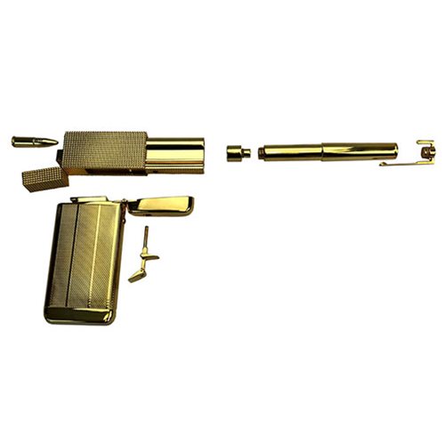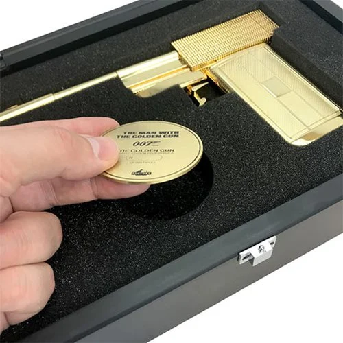 L’une des armes les plus emblématiques du cinéma, le pistolet d’or que l’assassin Francisco Scaramanga utilise pour tenter d’abattre Roger Moore dans le James Bond L’homme au pistolet d’or.