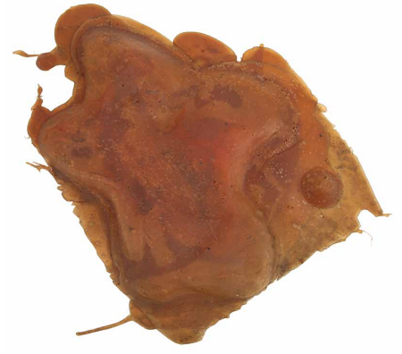 Un parasite volant de « Operation: Annihilate! », Épisode 29 de la première saison de Star Trek. Les parasites volants ont rendu fous les habitants de la colonie de la Fédération Deneva. On s’est également attaché à M. Spock (Leonard Nimoy) et l’a infecté. Les parasites se trouvaient souvent au repos sur les murs et les plafonds et semblaient immunisés contre les explosions de phaser de l’équipage. En attaquant, cependant, ils ont volé vers leurs hôtes prévus et se sont accrochés, devenant par la suite connus sous le nom de « pizza volante » par les collectionneurs et les fans. La créature est faite de latex et s’est décolorée avec l’âge, virant au brun plus foncé, bien qu’une partie de la peinture rouge de la production soit encore visible. Une partie du silicone autour du bord s’est effilochée et déchirée.