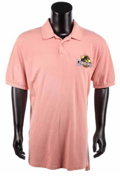 Un polo de conducteur de jeep de l’aventure de science-fiction de Steven Spielberg, Jurassic Park. Des polos roses de la marque Jurassic Park ont été portés par les employés de Jurassic Park, y compris le conducteur de la Jeep qui conduisait Alan Grant (Sam Neill), Ellie Sattler (Laura Dern), Ian Malcolm (Jeff Goldblum) et John Hammond (Richard Attenborough) à travers le parc à leur arrivée et s’est arrêté pour observer le brachiosaure. Cette chemise en coton arbore le logo emblématique de Jurassic Park cousu sur la poitrine gauche. Fabriqué par Thornton Bay Clothing Co., il est marqué taille XL. Il comporte également une étiquette d’inventaire Universal Studios à code-barres. Le polo a une certaine usure due à l’utilisation et à l’âge de la production, y compris des taches mineures sur le devant et des pincements très mineurs sur certaines coutures.