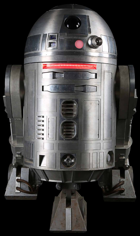Un droïde télécommandé R2-BHD lumineux de Gareth Edwards’ Rogue One: A Star Wars Story. R2-BHD a servi de droïde astromech au hangar de la base de l’Alliance dans le Grand Temple sur Yavin 4, et a été affecté au Gold Leader (Angus MacInnes). Cassian Andor (Diego Luna) a conduit Jyn Erso (Felicity Jones) à travers le hangar avant de commencer leur recherche des plans de l’étoile de la mort. Le même corps de droïde a également été utilisé dans Rogue One en tant que deuxième unité, R3-S1, avec un dôme transparent et des détails orange (dôme R3-S1 non inclus avec ce lot.) Le droïde, affectueusement appelé « Tooby », était construit à la main par Brad Oakley, qui a également produit des droïdes pour Star Wars : The Last Jedi et Solo : A Star Wars Story. Il est fabriqué principalement en aluminium, y compris une coque externe tout en aluminium, ainsi que des pieds en acier pour plus de durabilité. Le droïde est capable d’une conversion « 2-3-2 », ce qui signifie que la jambe centrale peut être étendue lorsqu’elle roule ou rétractée lorsqu’elle est statique. Il comporte trois « projecteurs holographiques » en aluminium, une bande de LED sur le corps principal et une petite zone de LED qui forment des motifs et épelent des mots, en fonction du programme de commande sélectionné. Le droïde comprend de nombreuses fonctionnalités interactives, notamment de nombreux éléments mobiles et panneaux à commande électronique. Il est programmé avec plus de 200 séquences de bruit et de mouvement différentes, contrôlées via une manette PlayStation® modifiée. Estimation: 60 000 à 80 000 R2-BHD a également été vu dans plusieurs featurettes promotionnelles et en coulisses pour Rogue One, et apparaît aux pages 39 et 59 de Star Wars: Rogue One – The Ultimate Visual Guide avec une petite section sur son histoire et personnalité. Le droïde figurait également dans une publicité Gillette® publiée lors de la promotion de Rogue One. L’annonce, intitulée « Chaque histoire a un visage », présentait la journée d’un soldat rebelle à l’envers, de l’affrontement contre les stormtroopers impériaux sur Scarif, jusqu’à son rasage ce matin-là. À un moment donné pendant la publicité, les soldats ont dépassé ce droïde R2-BHD. Le droïde astromech est terni par l’utilisation et l’âge, comme une grande partie de l’équipement de la rébellion, et conformément au concept visuel initial de « futur utilisé » de George Lucas. Les pieds peuvent être retirés pour le stockage et le transport. Le lot est accompagné d’un exemplaire de Star Wars: Rogue One – The Ultimate Visual Guide, qui présente ce droïde, ainsi que d’autres marchandises qui intègrent spécifiquement R2-BHD, y compris une découpe en carton grandeur nature, un pack de figurines « Droid Factory ». , une figurine Lego, un modèle et un calendrier perpétuel. Il est également livré avec une alimentation, une télécommande et une liste de commandes préprogrammées.